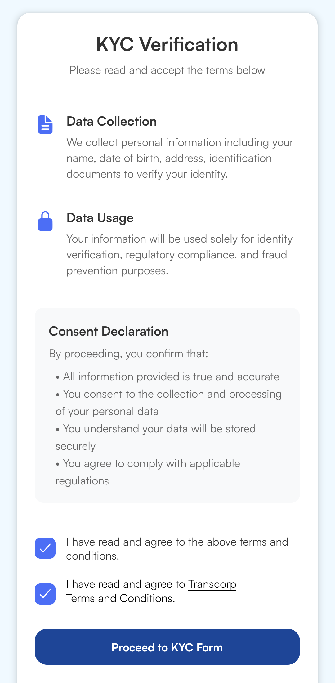 2. Review Terms: Read and agree to the terms and conditions for data processing.