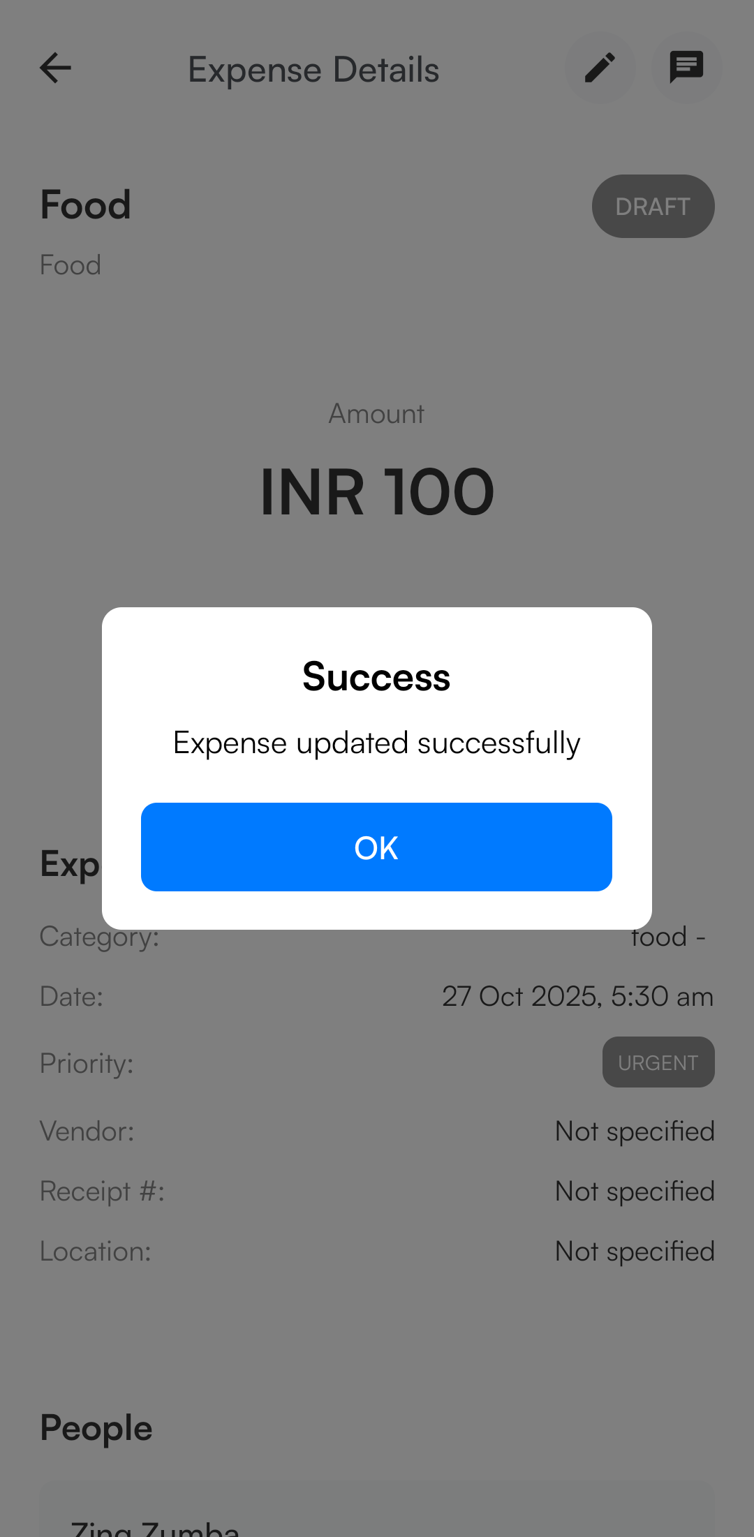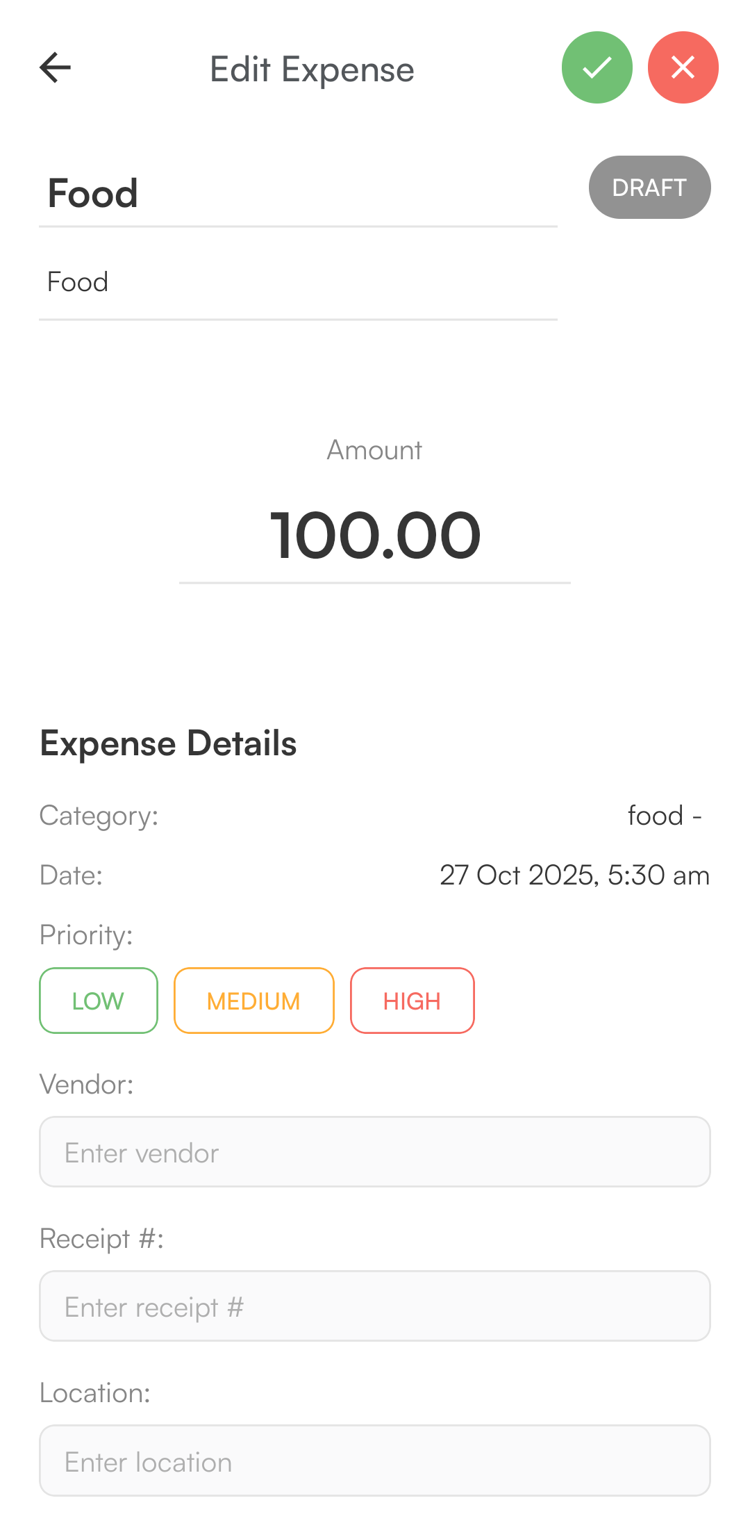 - The Edit option allows you to update expense entries after they have been created. This is useful if you need to correct details, add missing information, or attach receipts.